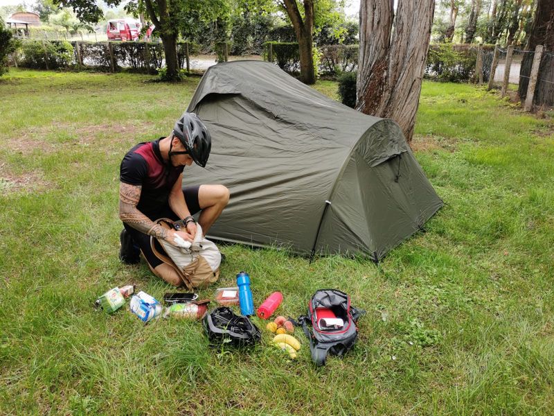 We hebben besloten om spaghetti bolognese te maken, dus we doen wat boodschappen en koken op het campinggasstel! Voor we gaan slapen kijken we nog even naar de route voor de volgende dag. We hebben zware benen maar goed, het is pas de eerste dag dus ze zullen er wel aan wennen!