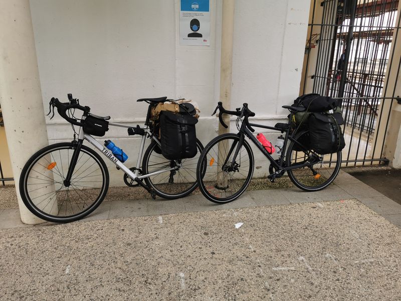 We komen met de TER-stoptrein aan op het station van Nevers, de plekken voor fietsen in deze trein waren echt heel praktisch. Na een paar minuten om onze fietsen uit te rusten met de GPS op het stuur begint het avontuur! We hebben nog geen idee waar we vanavond gaan slapen maar we vinden ongetwijfeld wel ergens een plekje voor de tent.