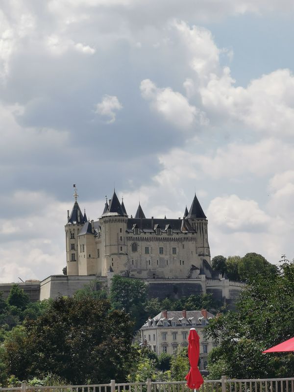 Na 2 dagen regen en wat welverdiende rust vertrekken we weer onder een stralende zon. Richting Saumur! Dit gedeelte is heel lieftallig, het is een beetje heuvelachtig, met wijngaarden tot aan de horizon en bij aankomst in Saumur zicht op het hoger gelegen kasteel. Ook vanaf de camping hebben we een ongelofelijk uitzicht op het kasteel.