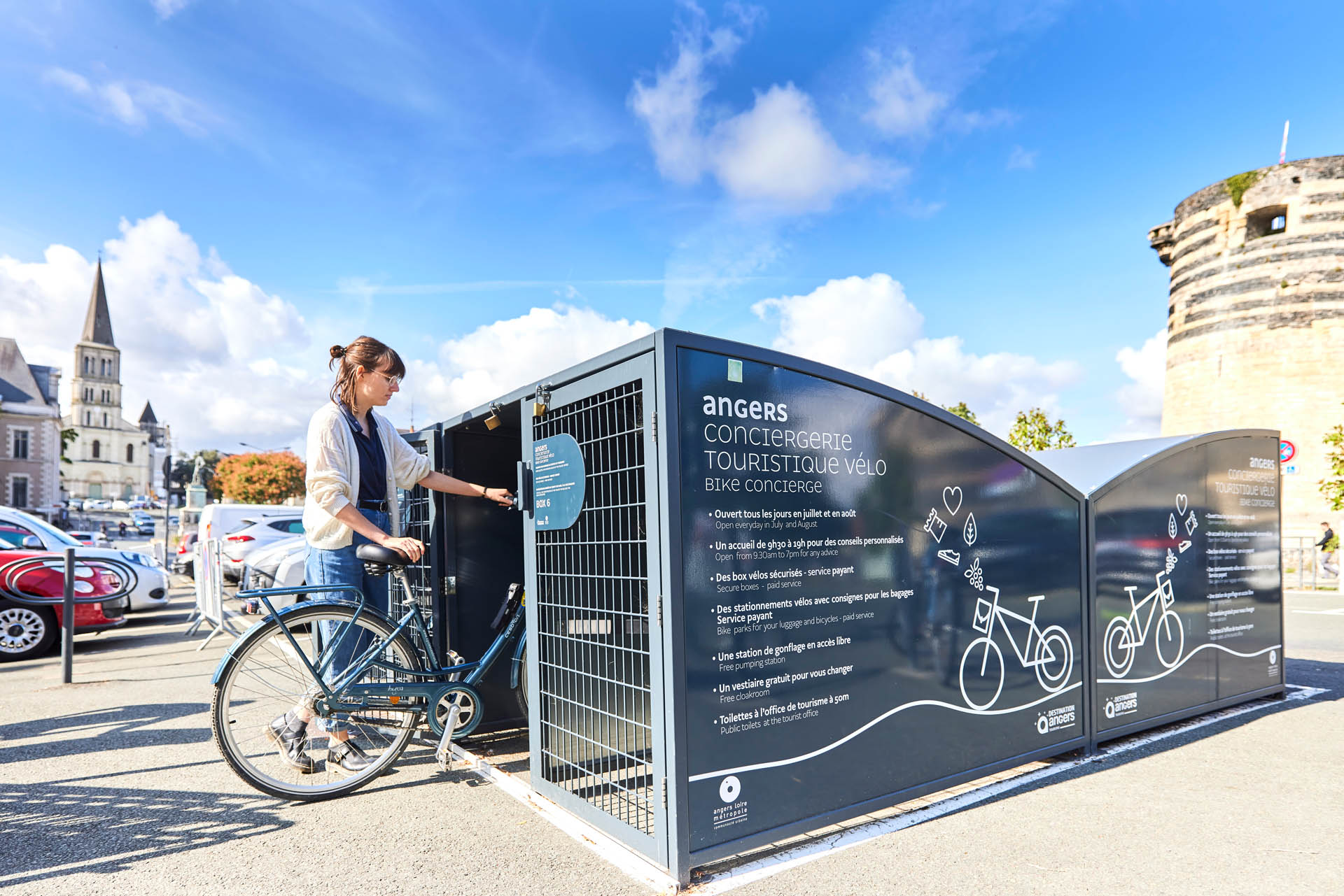 De fietsconciërgedienst neemt deze zomer zijn intrek op de Place Kennedy in Angers, tegenover het Château. Je wordt er hartelijk ontvangen, krijgt persoonlijk advies en beveiligde faciliteiten om de stad met een gerust hart te ontdekken.Gesproken talen:Engels, Frans