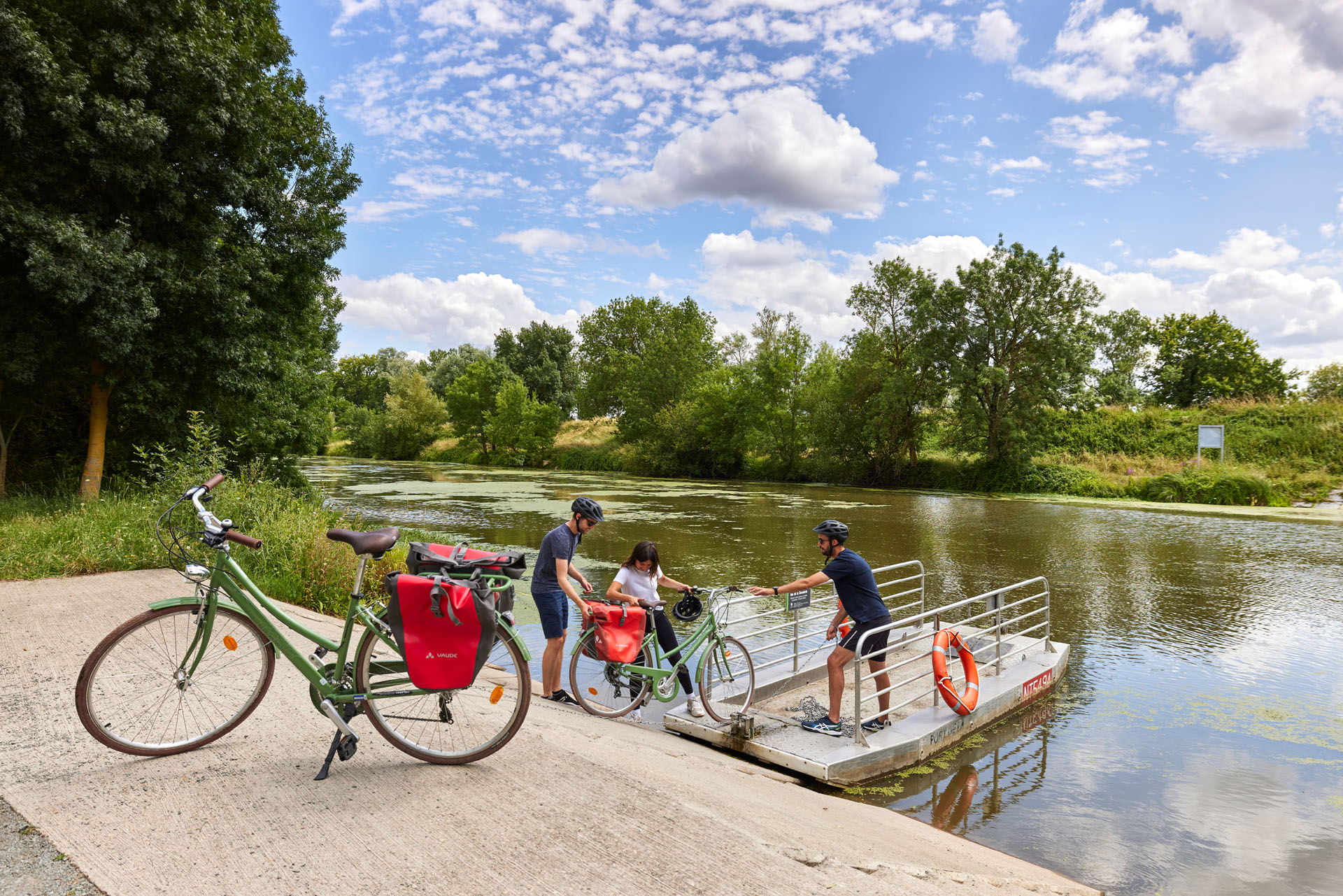 Deze veerboot op de Authion is geopend van eind maart tot november en verbindt de Loire via een fietsroute met de uitzonderlijke site van de Ardoisières de Trélazé, met zijn ongewone natuurlijke omgeving en oude bodems omgevormd tot waterputten.Gesproken talen:Frans