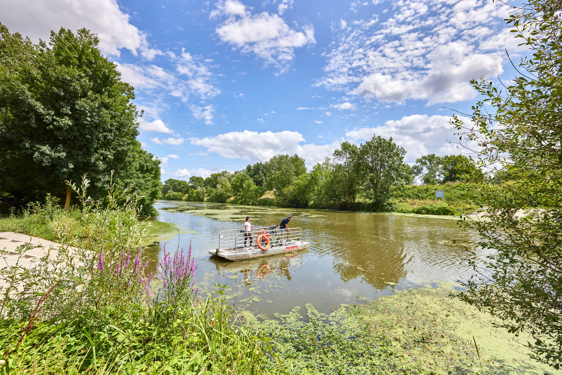 Deze veerboot op de Authion is geopend van eind maart tot november en verbindt de Loire via een fietsroute met de uitzonderlijke site van de Ardoisières de Trélazé, met zijn ongewone natuurlijke omgeving en oude bodems omgevormd tot waterputten.