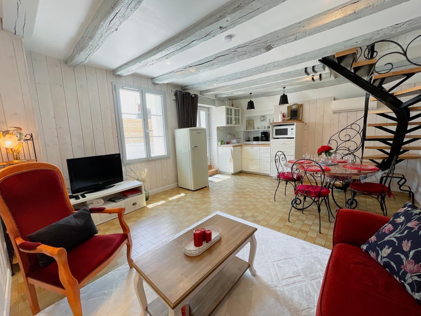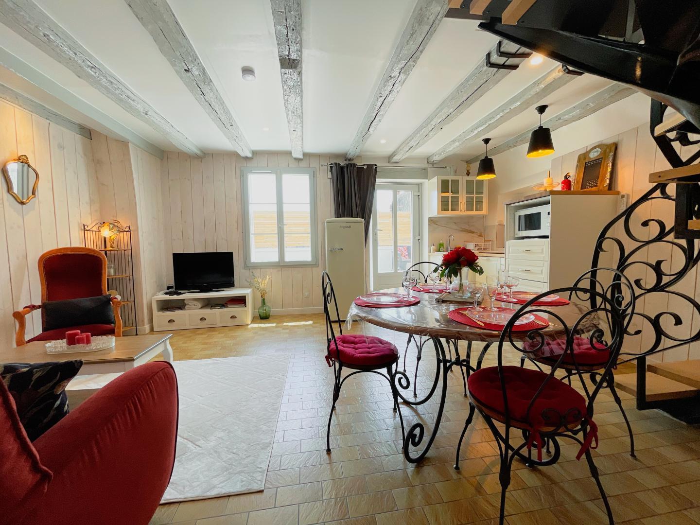 Je raakt vast en zeker in de ban van deze gîte, want hij heeft alle ingrediënten voor een aangenaam verblijf: rust en stilte, een groot terras om buiten te eten en te ontspannen, een verfijnde inrichting en een compleet aanbod aan faciliteiten. Wat een genot om te genieten van deze plek waar aan alles is gedacht voor je welzijn! Maak een wandeling door de smalle straatjes van het dorp, geniet van de vele winkels, bewonder het majestueuze, imposante kasteel in het hart van de stad en geniet van de levendige markt die in de hele regio bekend is. Dit is het rijke programma dat op u wacht, een perfecte 'introductie' voordat u eropuit trekt om de rijkdommen van de Touraine te veroveren. Fietsen, kanoën en wijnproeven bij onze wijnboeren vullen je bezoek aan de gemakkelijk bereikbare juweeltjes