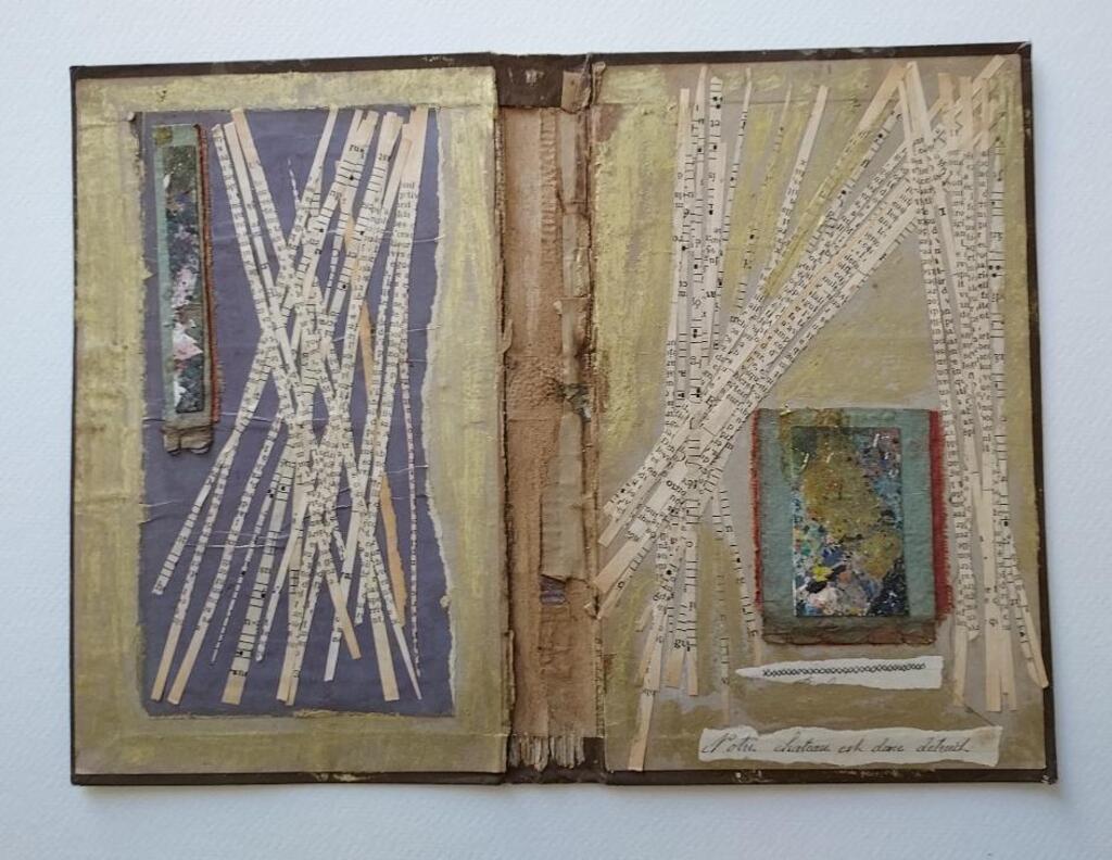 Hier onthult ze een vijftiental originele collages. De kunstenares gebruikt oude boeken of hun kaften als drager, waardoor de collage verandert in "schrijven op schrijven". Deze benadering benadrukt de nauwe symbolische link tussen het werk van de 'collagist' en dat van de schrijver.