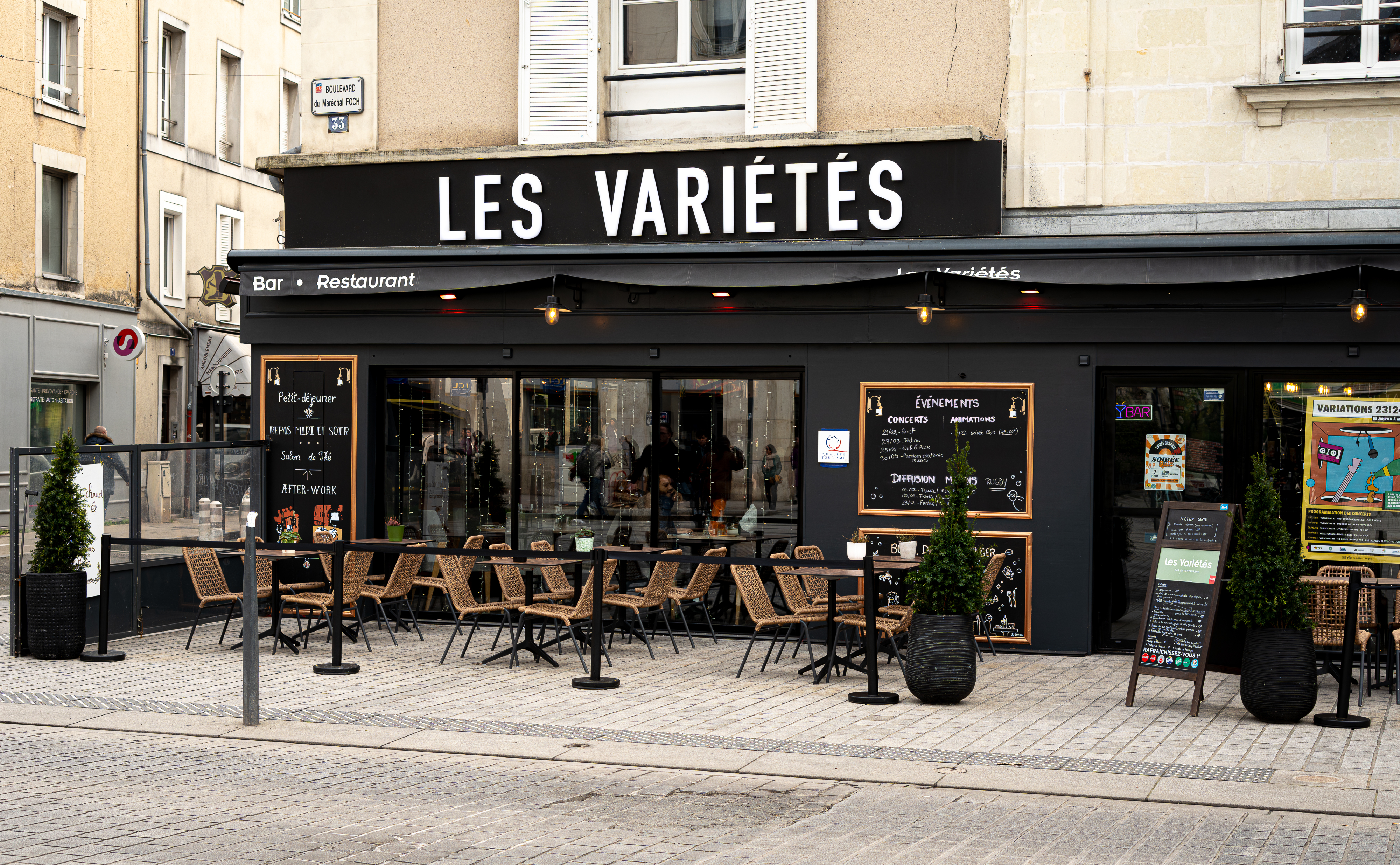 De 100% Angevine Brasserie. Deze locatie is al sinds 1902 een instituut. Al meer dan een eeuw komen in de Variétés massa's mensen naar Angers om een moment van gezelligheid te delen.