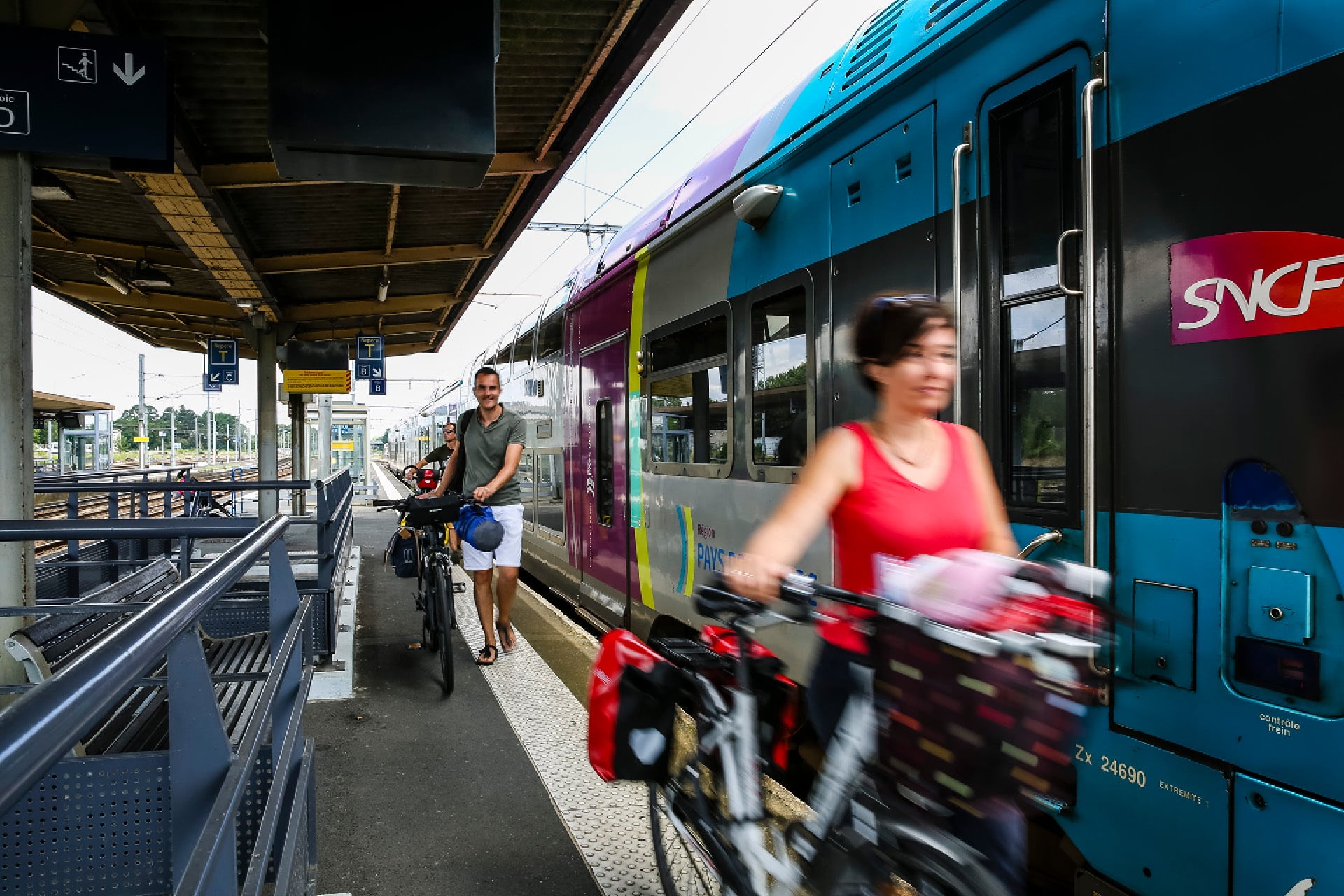 Houd er rekening mee dat de Loire-fietstrein op bepaalde tijden van de dag rijdt. De andere treinen op de lijn Orléans <> Nantes/Le Croisic accepteren standaardfietsen, waarvan het aantal varieert afhankelijk van het type rollend materieel (zie TER Aleop– en REMI-sites)